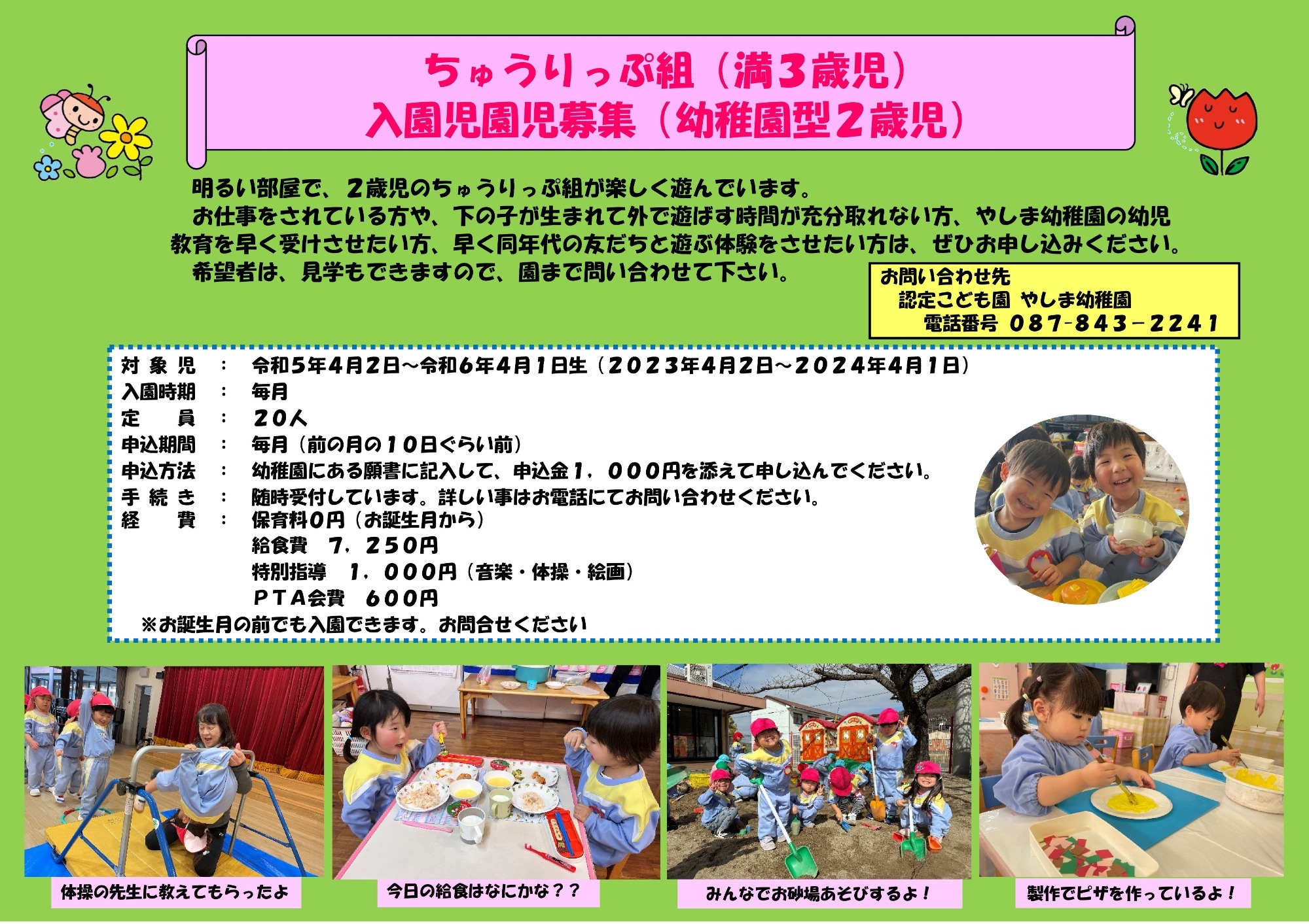 ・特別指導費(毎月) 満3歳児 1,000円 / 3・4歳児 2,500円 / 5歳児 3,000円